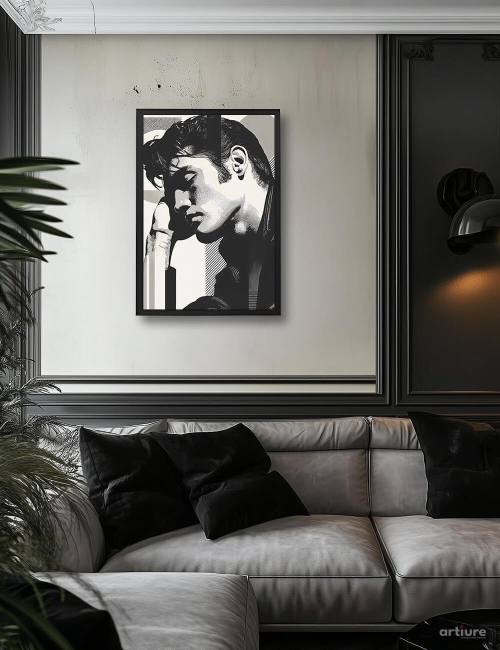 "Blue Suede Reverie" captures the raw charisma of Elvis Presley in a grayscale palette layered with modern design accents. The artwork reimagines the iconic figure in a moment of quiet reflection—evoking the soul of rock ’n’ roll and timeless style. Ideal for collectors of music memorabilia and those drawn to vintage icons. Printed on FSC Certified age-resistant paper to ensure enduring quality and impact.