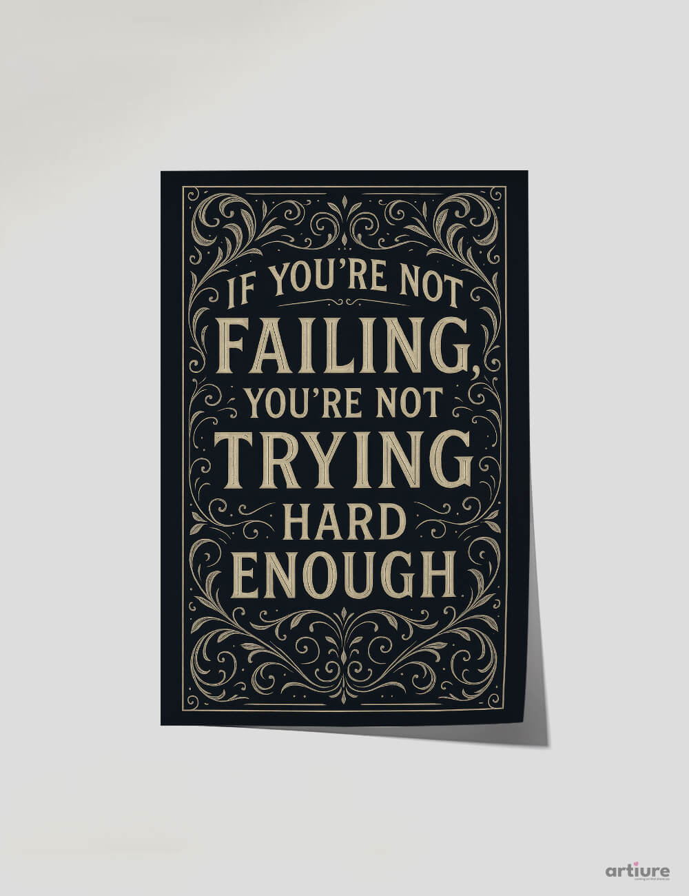 Let resilience take center stage with this intricately illustrated monochrome poster. Adorned with elegant vintage flourishes and powerful typography, this artwork celebrates effort, grit, and ambition. Whether displayed in your workspace, study, gym, or creative corner, it serves as a daily reminder that failure is a stepping stone to success. Printed on FSC-certified, age-resistant paper, this motivational piece blends timeless style with sustainable values—ideal for driven individuals and thoughtful gifting.