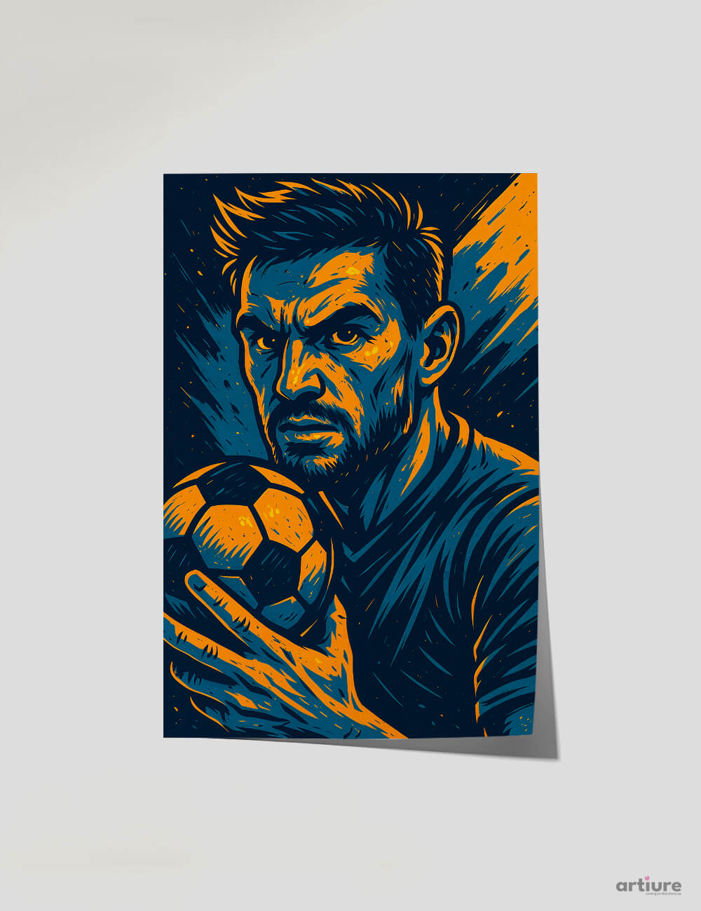 Final Whistle Fury brings the emotional power of the game to life. This 12x18 inch poster features a striking illustration of a soccer player in a moment of fierce concentration, rendered in expressive lines and vivid hues of navy and orange. A tribute to competitive spirit, focus, and passion, this piece belongs in any space that celebrates sport and perseverance. Printed on quality, recyclable paper, it’s a perfect pick for bedrooms, gyms, or studio walls.