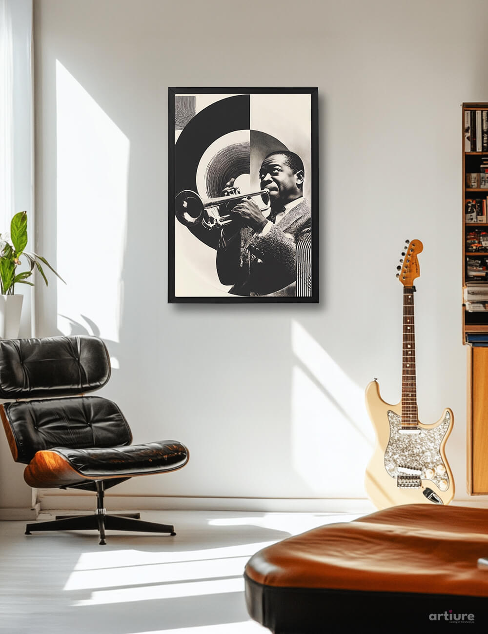 "Jazz in Motion" captures the legendary Louis Armstrong in a striking monochrome composition, seamlessly blended with contemporary geometric patterns. The trumpet, poised mid-note, echoes the energy and improvisation of jazz. Perfect for music lovers, vintage art enthusiasts, and those who appreciate cultural icons reimagined in modern visual language. Printed on FSC Certified age-resistant paper for lasting quality.