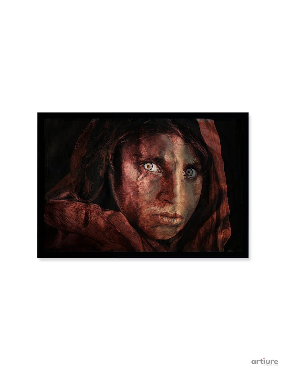 “Silent Gaze of Afghanistan” is a deeply moving textile artwork that captures the quiet strength and emotional resilience of an Afghan girl. Her intense, expressive eyes speak of survival, identity, and untold stories shaped by hardship and hope. The layered textile textures add depth and rawness, mirroring the complexities of her lived experience. Earthy reds, browns, and muted shadows enhance the dramatic realism, drawing the viewer into an intimate emotional connection. This artwork transcends portraiture, becoming a symbol of courage and dignity. Arun Bajaj masterfully blends human emotion with textile artistry, creating a timeless piece that resonates with empathy, cultural depth, and profound visual impact.