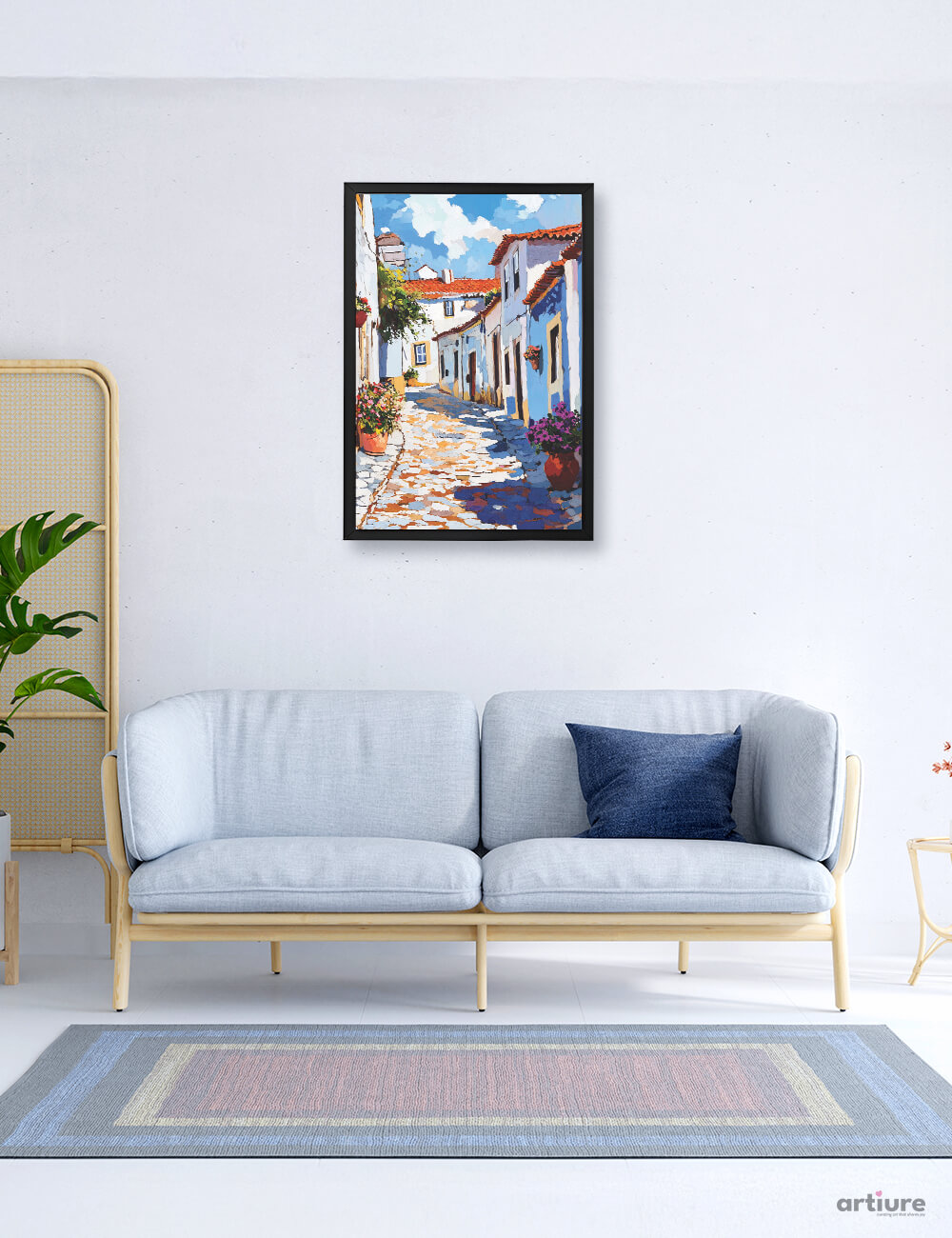 Bring home the magic of sun-drenched streets with Sunlit Alley. This textured townscape features whitewashed walls, terracotta roofs, flowering pots, and cobbled paths, all rendered in a richly painted impressionist style. Perfect for lovers of old towns and nostalgic travel moments, this piece adds a dash of vibrant charm and storybook warmth to any corner. Sustainably printed on FSC-certified, age-resistant paper.