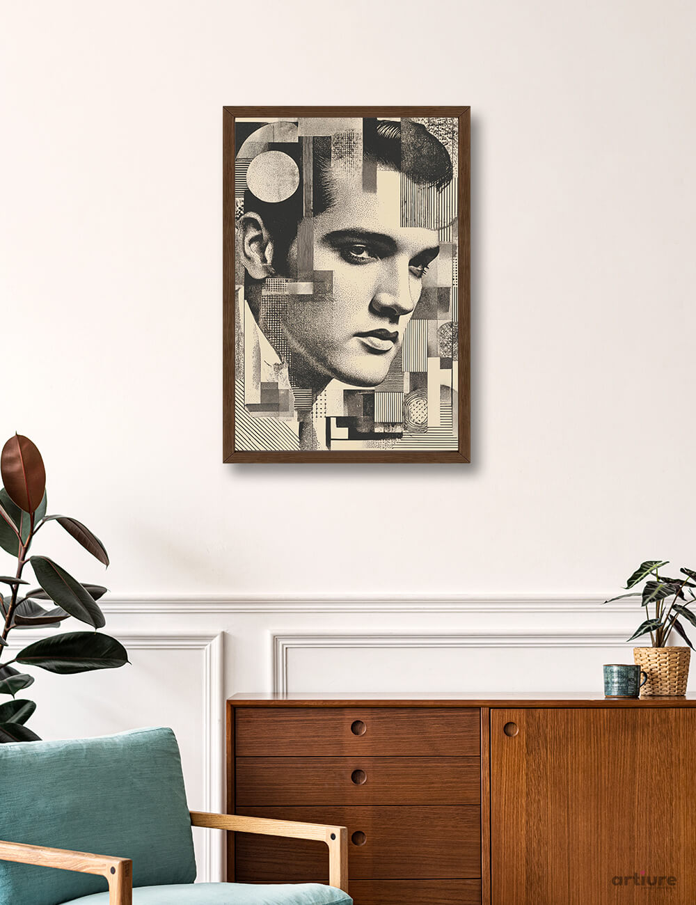 "Suspicious Lines" transforms the classic appeal of Elvis Presley into a sophisticated, structured visual experience. Using layered geometry, halftone textures, and subtle tonal shifts, this art print merges pop nostalgia with a Bauhaus-like abstract twist. A bold tribute to the King’s enduring legacy, this piece is ideal for interiors that balance retro influence with modern design. Printed on FSC Certified age-resistant paper, it's perfect for collectors and music lovers alike.