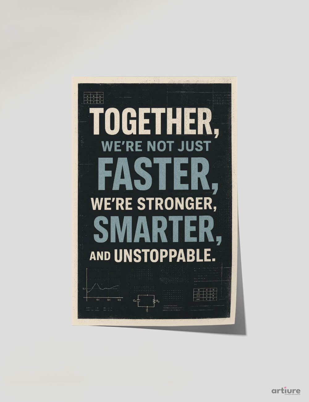 This dynamic poster reminds us that collective strength, intelligence, and resilience outperform solo speed. With its modern typography and technical blueprint-inspired backdrop, it’s a perfect addition to any space that values collaboration, innovation, and shared purpose. Printed on FSC-certified, sustainable paper, it’s as mindful as it is motivating.