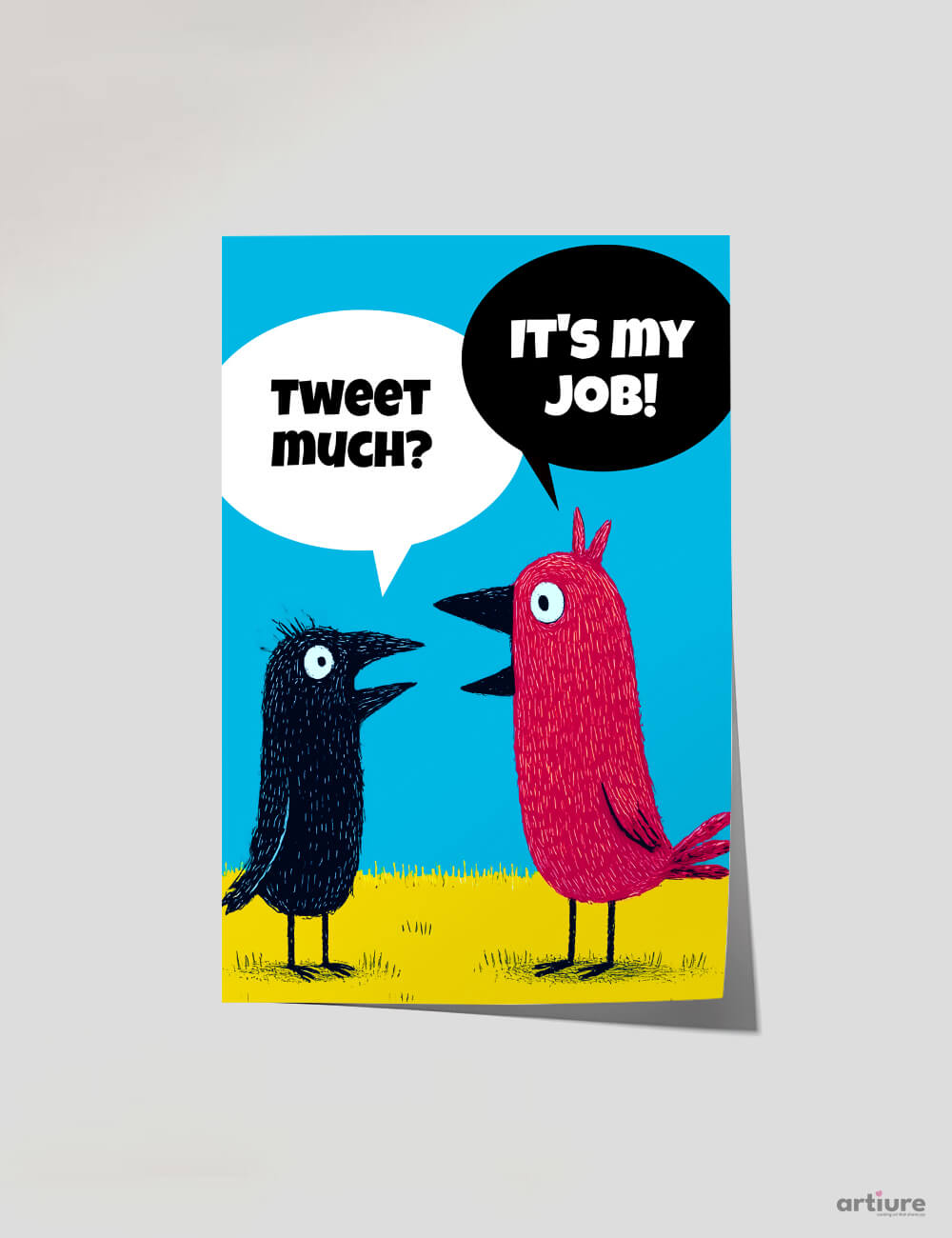 In this bold and witty addition to the Birds of Banter series, one bird throws shade with “Tweet much?” only to be met with a confident “It’s my job!” A bright blue backdrop, high-contrast humor, and charming characters make this the perfect pick for digital natives and social media cynics alike.